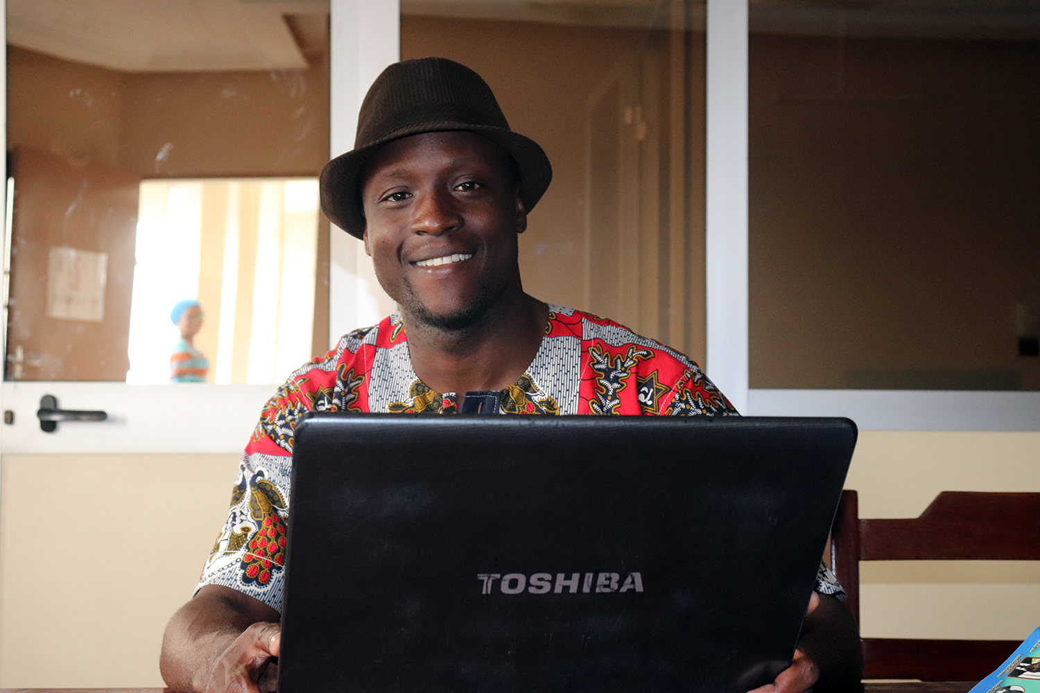 Les bureaux de BeninCultures sont au premier étage d’un immeuble de deux étages. Pas grand monde quand nous arrivons. Il est vrai que la rédaction n’est composée que de quatre personnes.